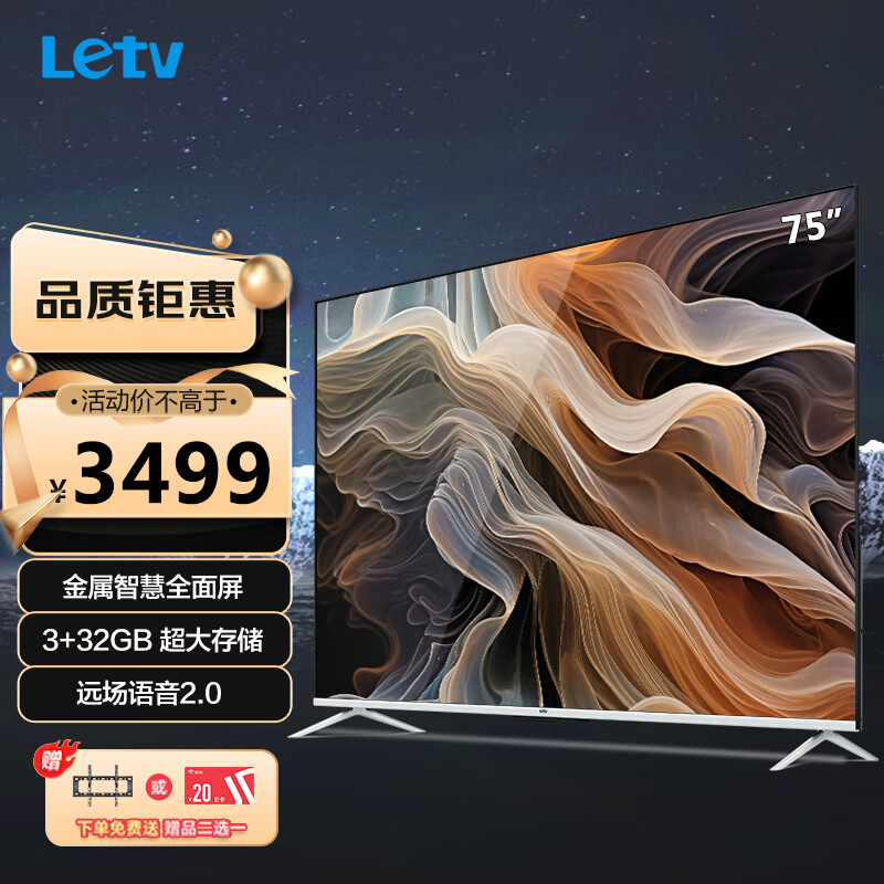 乐视TV(Letv)G75S 75英寸 4K超高清护眼智慧屏 金属屏 3+32G超大存储 MEMC 远场语音智能液晶平板电视机价格:3499.00元!