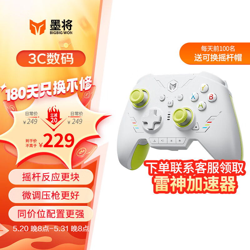 墨将 彩虹2 Se青春版 多模电竞游戏手柄 Switch Pro蓝牙体感震动电脑PC手机steam幻兽帕鲁Apex疾风绿价格:229.00元!