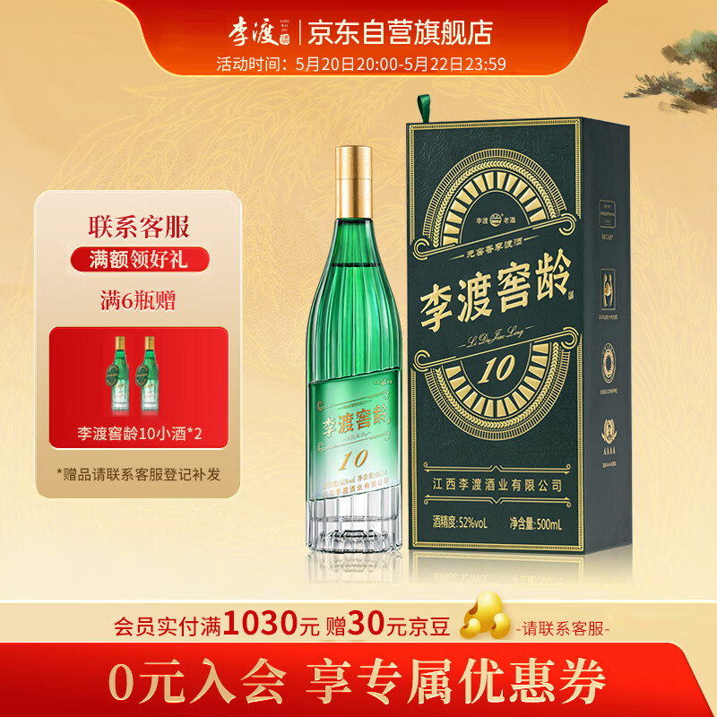 李渡窖龄10 元窖香白酒 52度500ml 单盒装价格:282.00元!