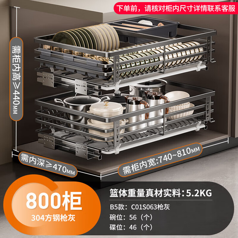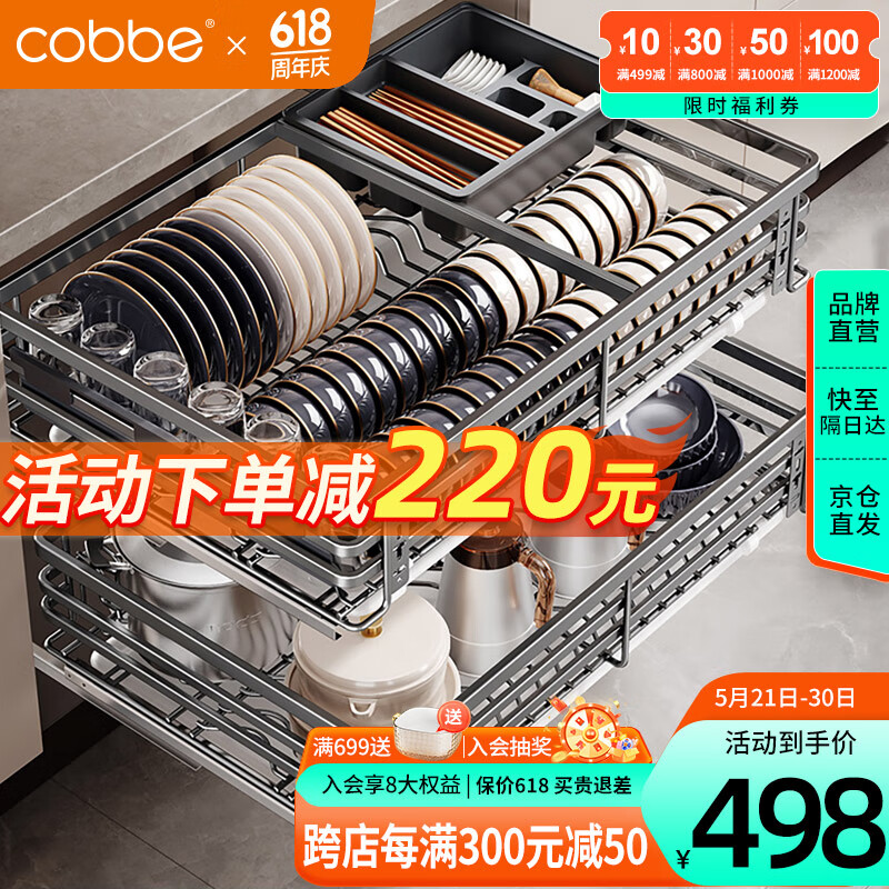 卡贝(cobbe)拉篮厨房橱柜304不锈钢厨柜碗筷抽屉式碗篮置物架调味拉蓝碗碟架价格:718.00元!