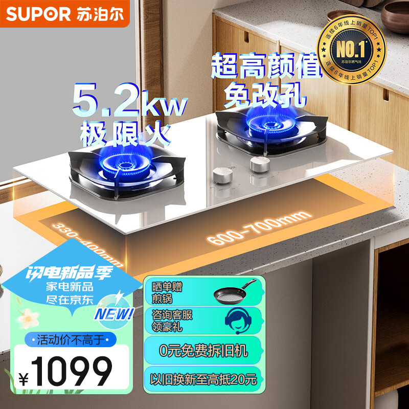 苏泊尔(SUPOR)燃气灶 天然气灶双灶台嵌两用 5.2kW大火力燃气灶 白色钢化玻璃双灶具 DB26S天然气价格:1099.00元!