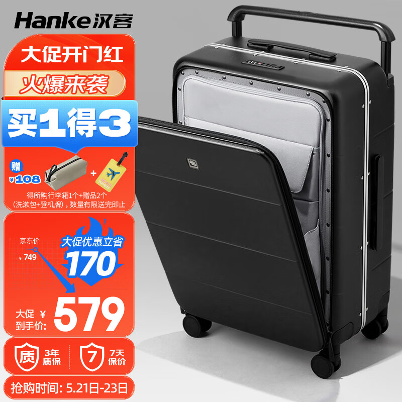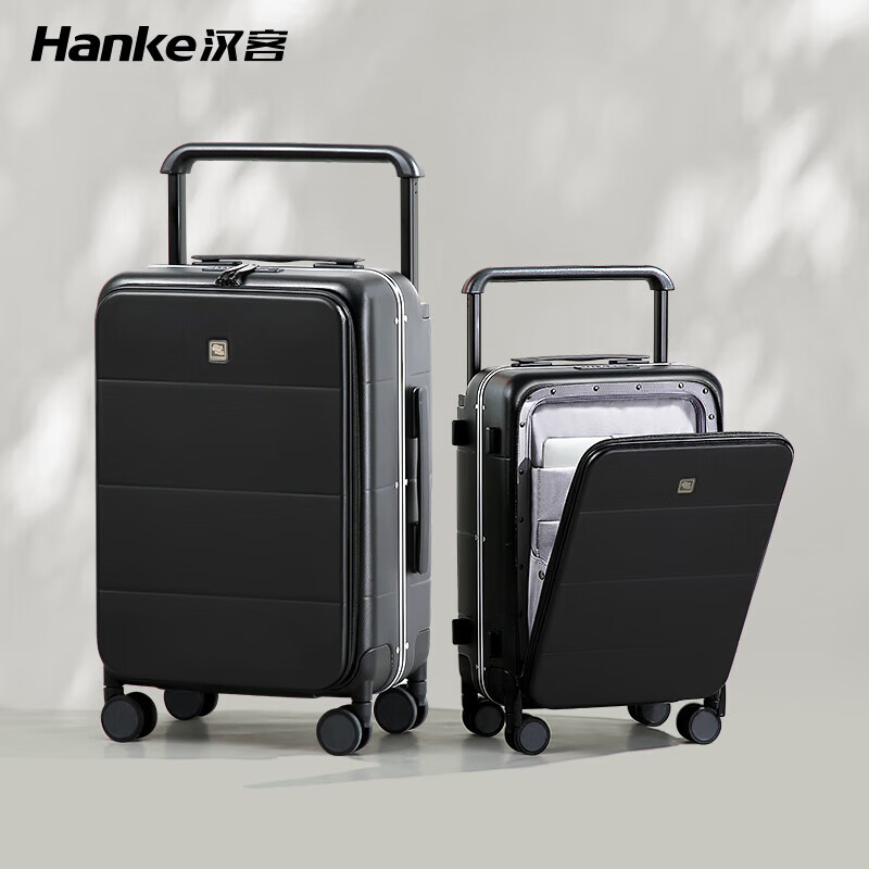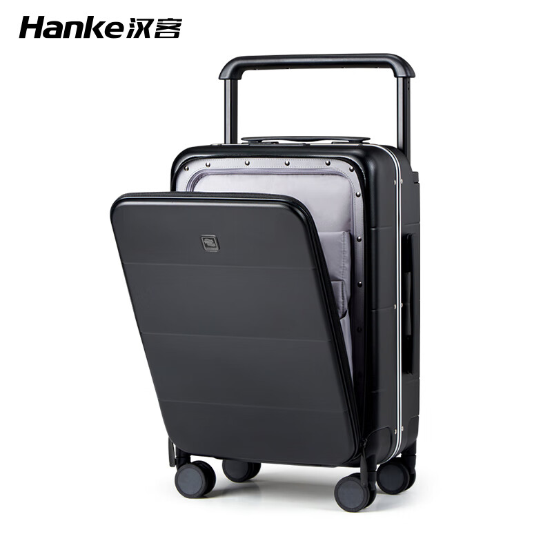 汉客宽拉杆行李箱铝框男前开盖拉杆箱旅行箱大容量24英寸墨玉黑密码箱价格:749.00元!