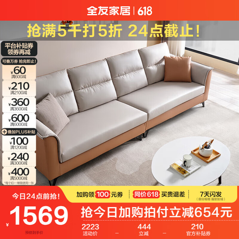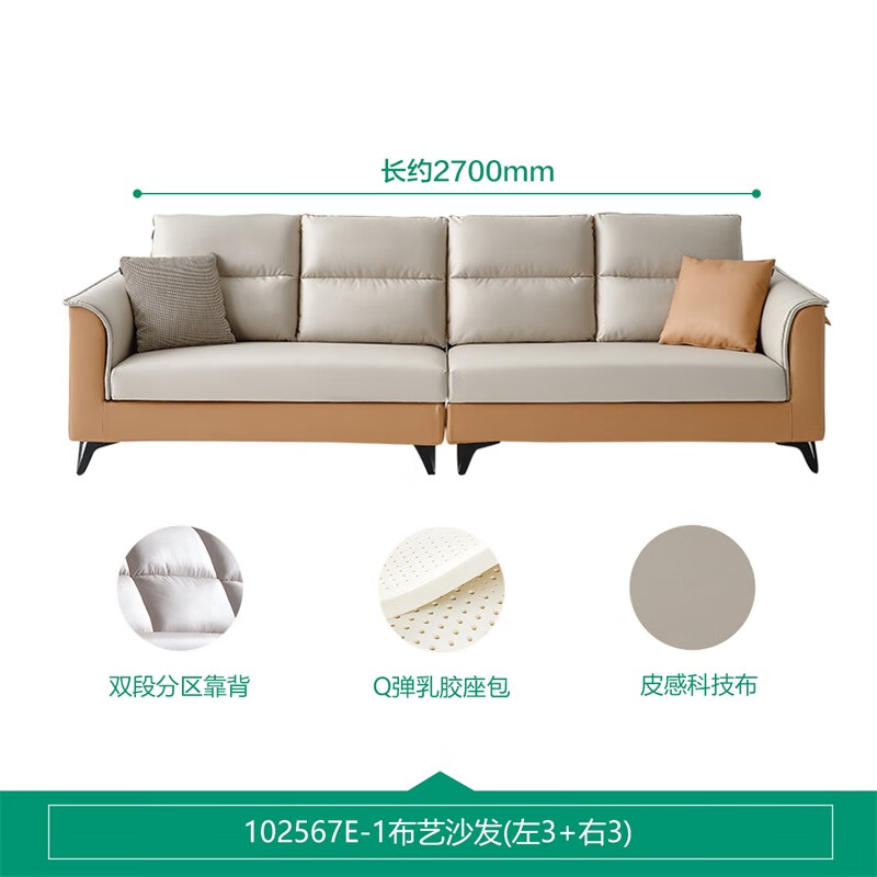 全友家居简约科技布沙发四人位沙发直排客厅小户型北欧休闲沙发102567价格:2223.75元!