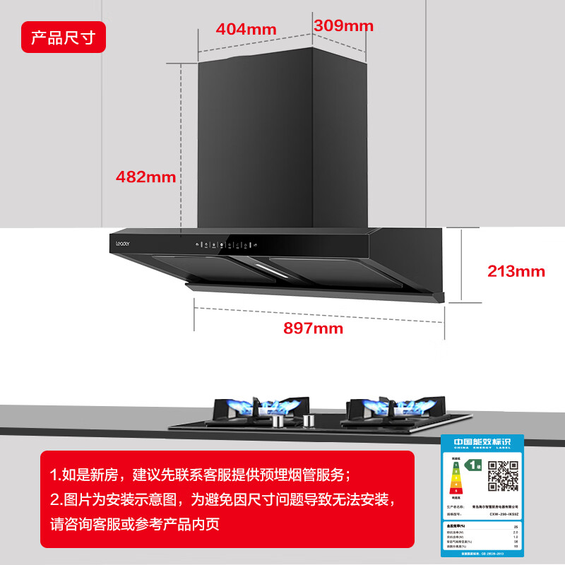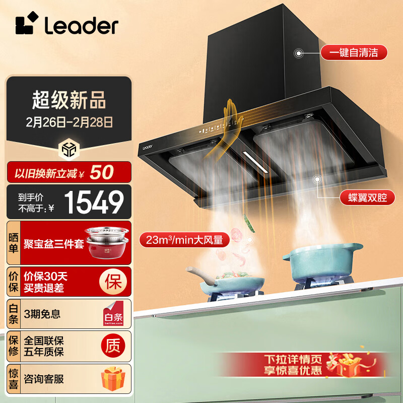Leader海尔智家出品 抽油烟机 欧式双腔吸油烟机 大吸力23m3/min 排油烟机 挥手智控 家用烟机IKS9Z价格:1549.00元!