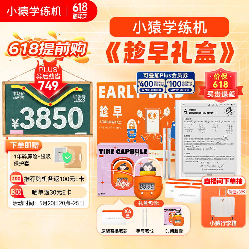 小猿学练机 旗舰款 教材同步练 AI错题本 墨水屏学习平板 猿辅导学习机 小猿智能练习本S2价格:3950.00元!