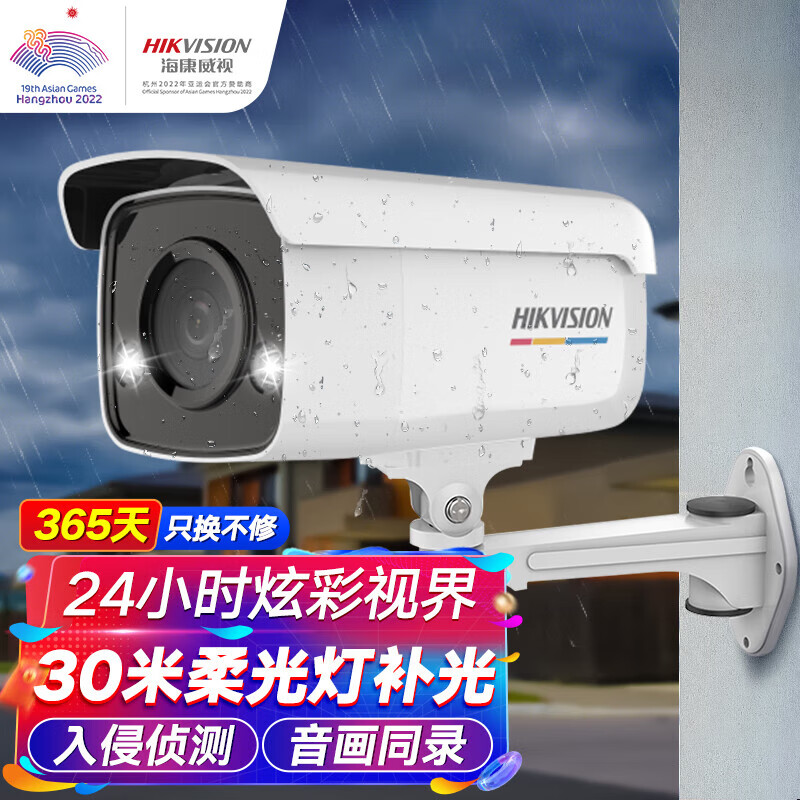 HIKVISION海康威视摄像头4K超清臻全彩网络摄像机智能警戒800万日夜全彩人车识别网线供电3T87WDA3-LS价格:1278.00元!