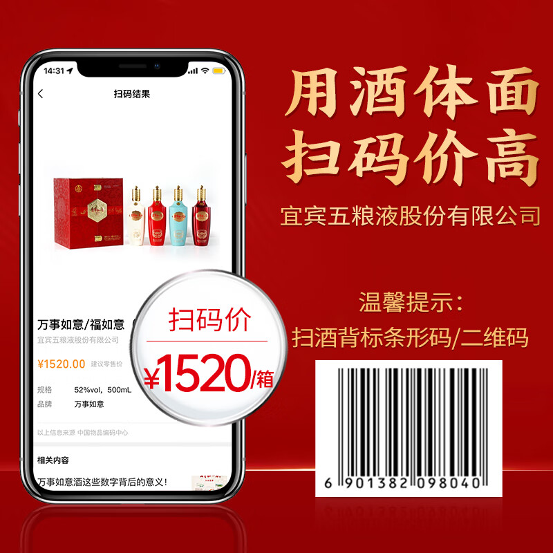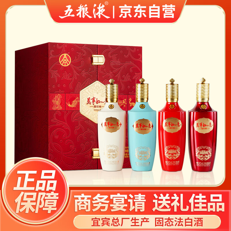 五粮液股份 端午节 万事如意福如意 纯粮食白酒52度500ml*4瓶 送礼佳品价格:988.00元!