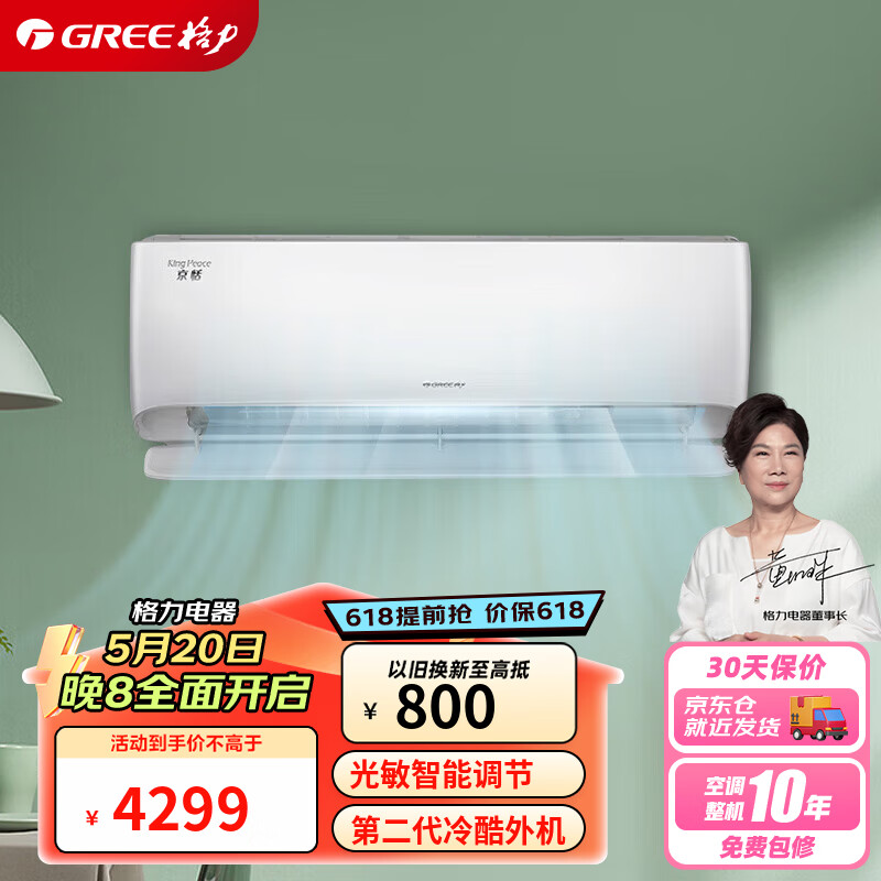 格力(GREE)1.5匹 京恬 新一级能效 变频冷暖 净菌自洁 WIFI智控 壁挂式空调挂机 KFR-35GW/(35551)FNhAa-B1价格:4299.00元!