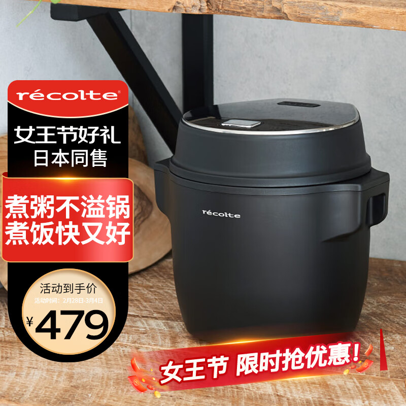 丽克特(recolte) 迷你电饭煲不粘锅煮饭1.2L 智能小型1-2人家用可预约小家电婴儿煮粥煲汤锅多功能煮饭电饭锅 1-2人电饭煲-曜石黑-RCR-1(BK)价格:519.00元!