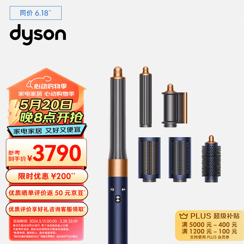 戴森(DYSON)多功能美发棒 Airwrap Complete空气卷发棒 多功能合一 旗舰套装 藏青铜色 长发版价格:3790.00元!