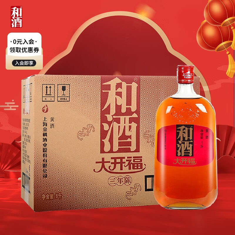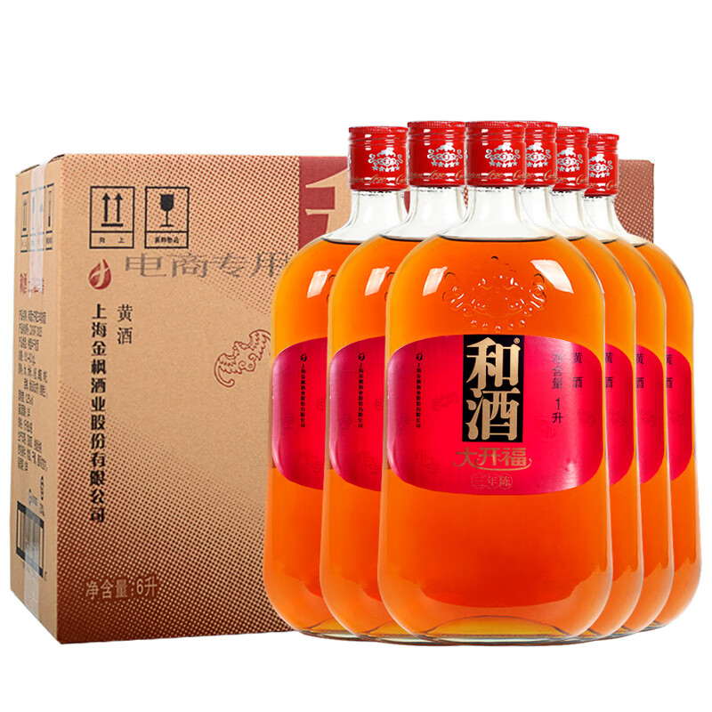 和酒 大开福三年陈 半干型 上海老酒 1L*6瓶 整箱装 黄酒价格:89.00元!