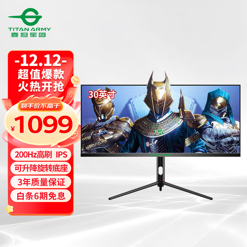 泰坦军团30英寸 200Hz带鱼屏 IPS广色域 内置音箱 可升降旋转底座 21:9智能分屏写代码 电竞电脑显示器P30A2M价格:1199.00元!