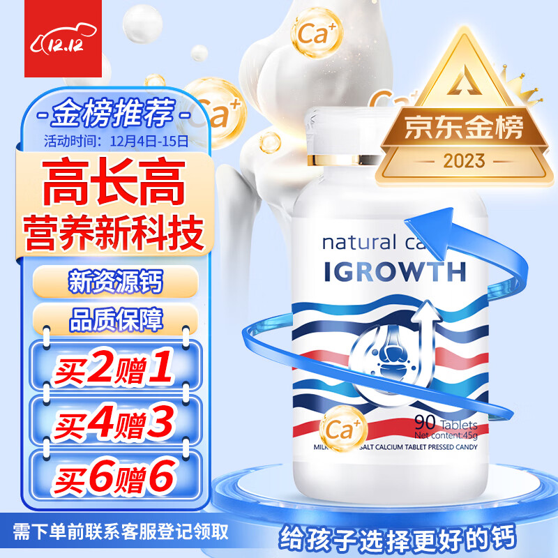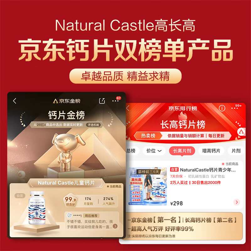 NaturalCastle青少年成长钙片高长高乳矿物盐钙片青少年儿童4一12-17岁18岁钙片*1瓶价格:399.00元!