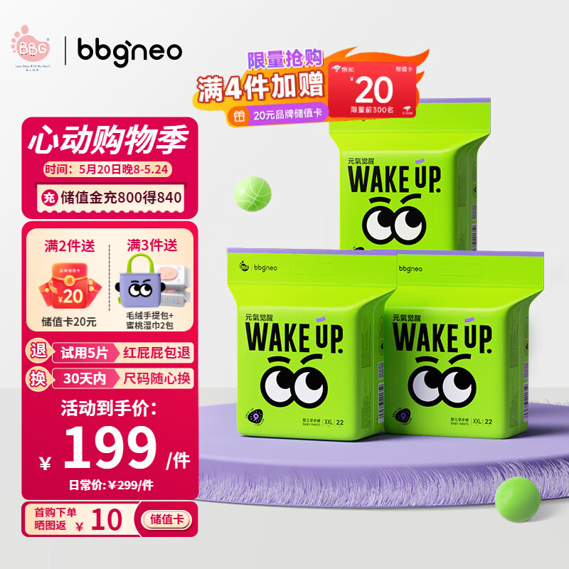 BBG元气觉醒neo系列拉拉裤2XL码3包箱装66片(12-16kg)尿不湿成长裤价格:219.00元!