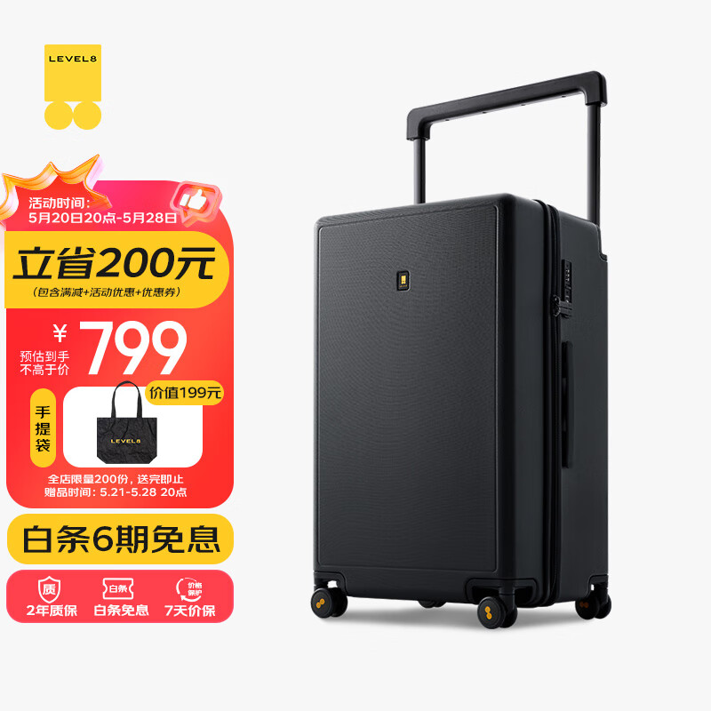 地平线8号(LEVEL8)行李箱 男女密码大容量万向轮26英寸宽拉杆大旅行家PC拉杆箱 黑色价格:999.00元!
