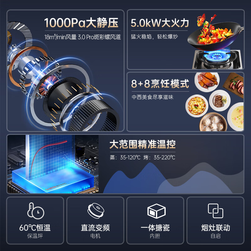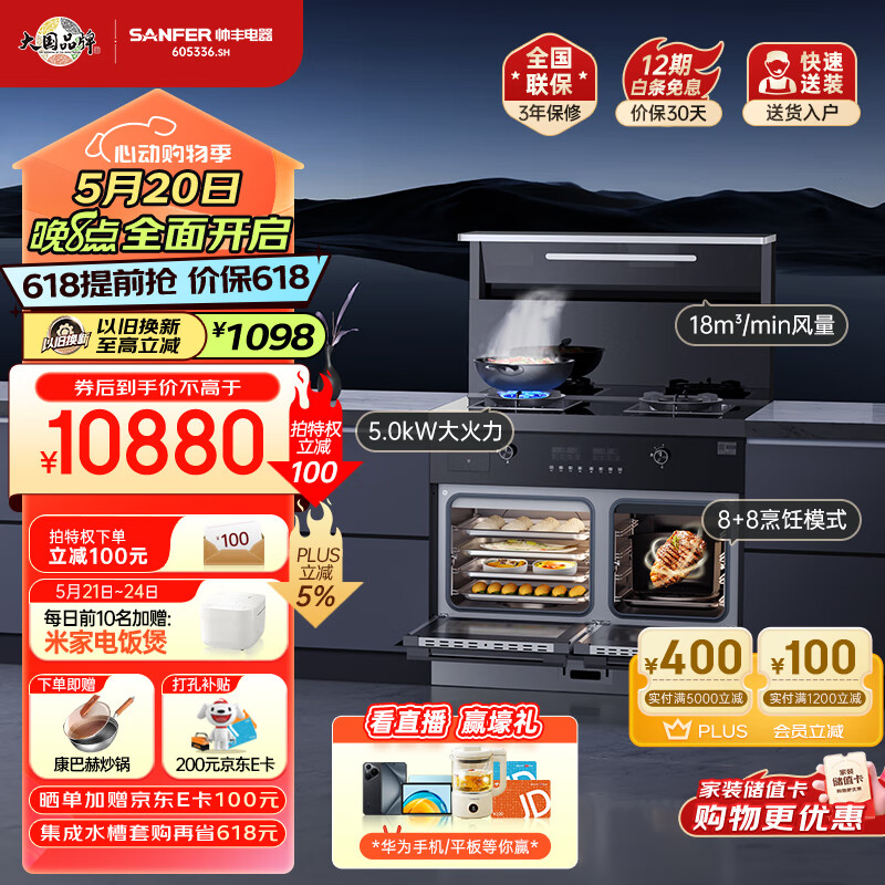 帅丰集成灶一体式 蒸箱烤箱 蒸烤箱一体机 家用蒸烤独立变频集成灶 TJ2-8B 5.0kW燃气灶 天然气价格:10980.00元!