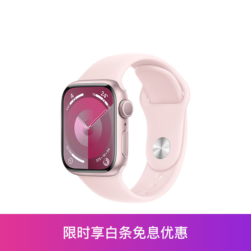 Apple/苹果 Watch Series 9 智能手表GPS款41毫米粉色铝金属表壳 亮粉色运动型表带M/L S9 MR943CH/A【免息版】价格:2999.00元!
