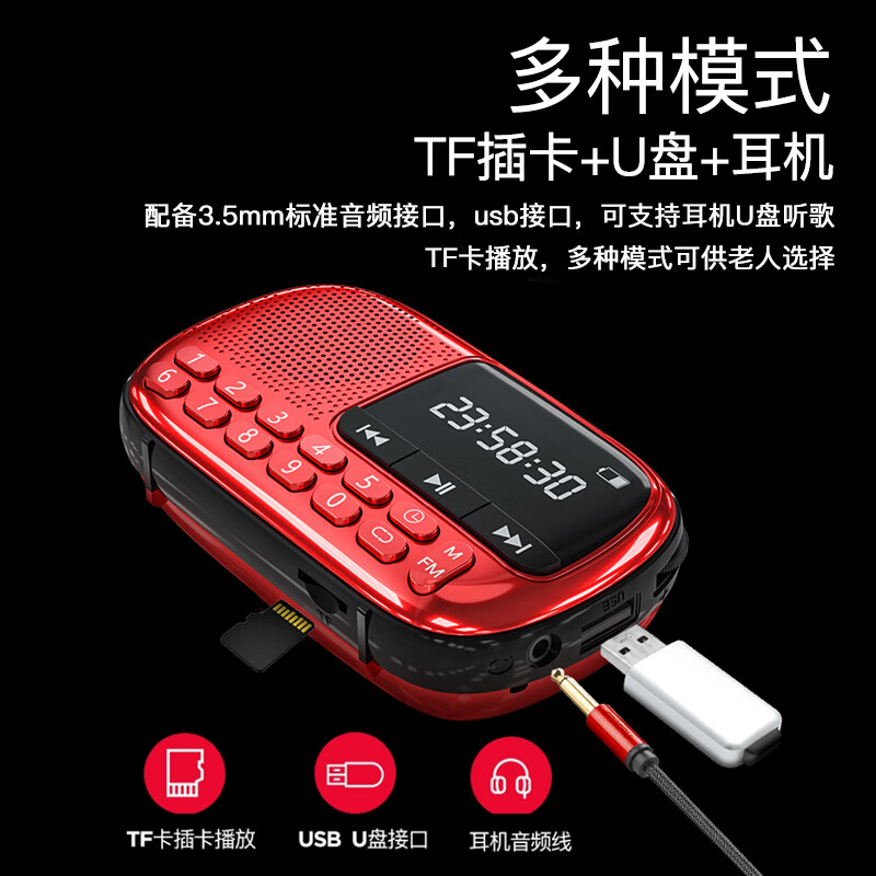 机身接口:耳机接口,TF卡接口,U盘接口
