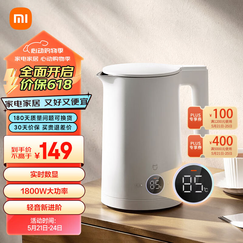 米家小米烧水壶保温一体全自动恒温电热水壶煮水壶家用 轻音烧水 304不锈钢 自动断电1.5升大容量P1价格:149.00元!