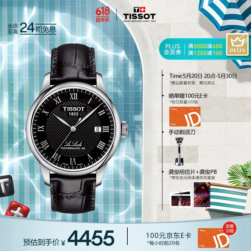 天梭(TISSOT)龚俊同款 力洛克系列机械男表 520送男友T006.407.16.053.00价格:4950.00元!
