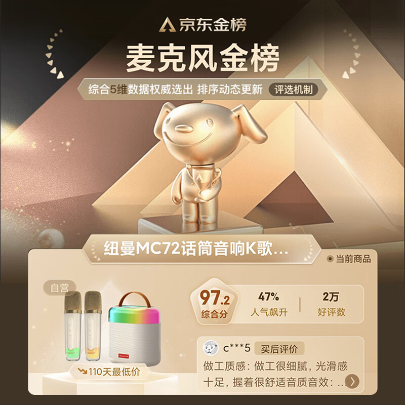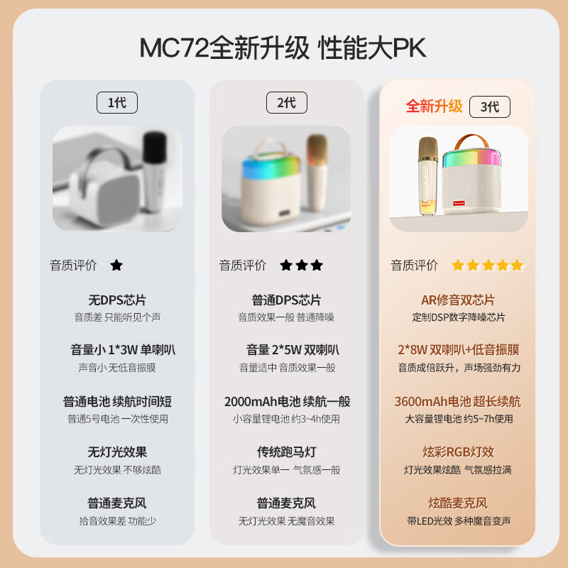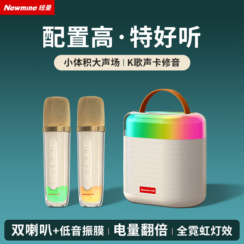 纽曼(Newmine)MC72话筒音响一体机自带声卡拉OK家庭ktv音箱套装手机电视K歌无线蓝牙便携麦克风 双麦版价格:199.00元!