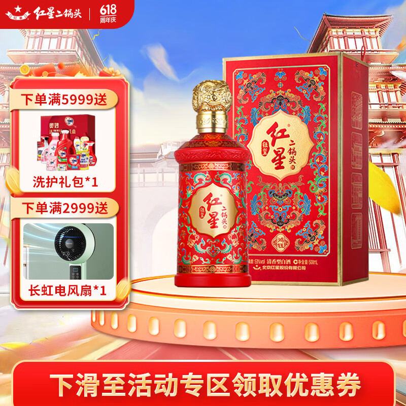 红星二锅头 钰玺-鸿钰 清香型白酒 53度500ml 单瓶装 送礼佳选价格:388.00元!