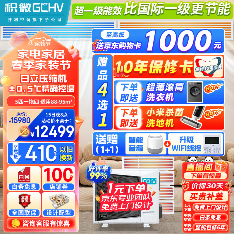 GCHV积微中央空调多联机 5匹一拖四 一级能效直流变频冷暖嵌入式风管机空调 适用三室一厅 EC系列价格:13599.00元!