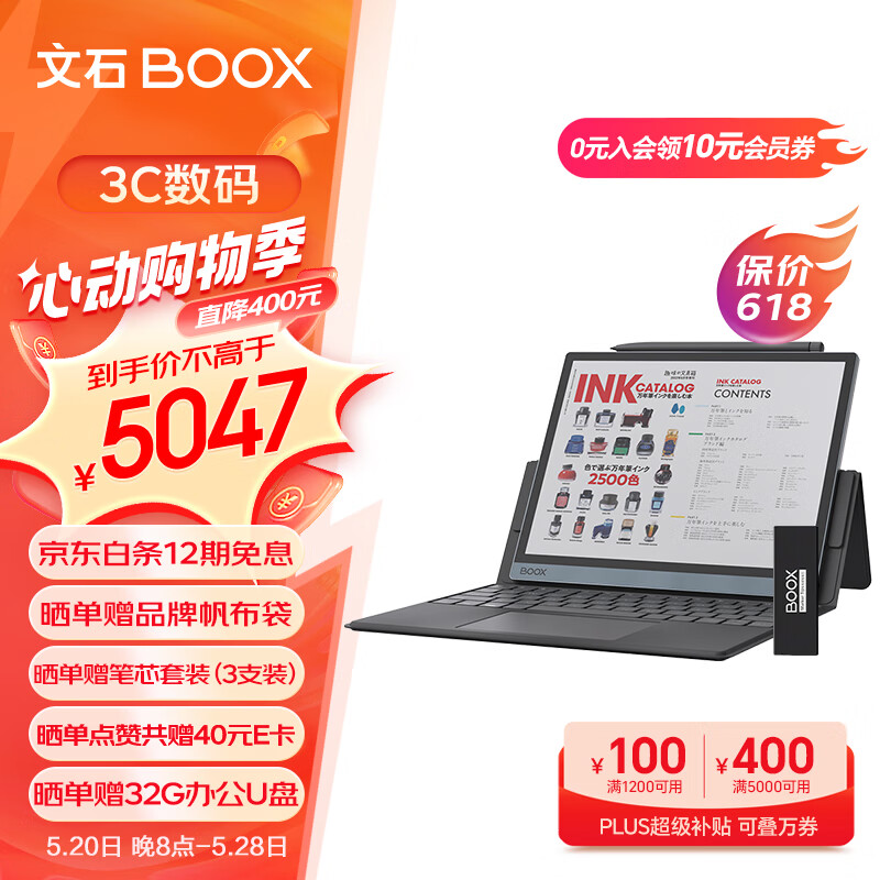 BOOX文石 Tab10C Pro 10.3英寸彩色电子书阅读器 高刷智能办公平板 笔芯+键盘保护套套装价格:5047.00元!
