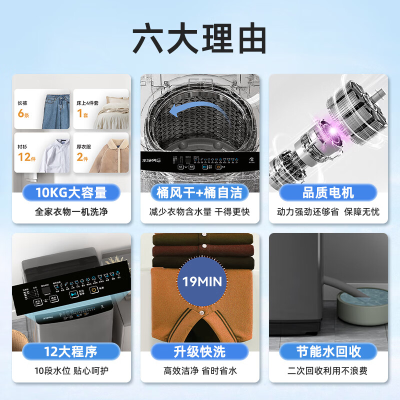 荣事达(Royalstar)洗衣机10公斤全自动波轮大容量家用脱水机宿舍租房可预约洗衣机 以旧换新浅灰ERVP192020T价格:649.00元!