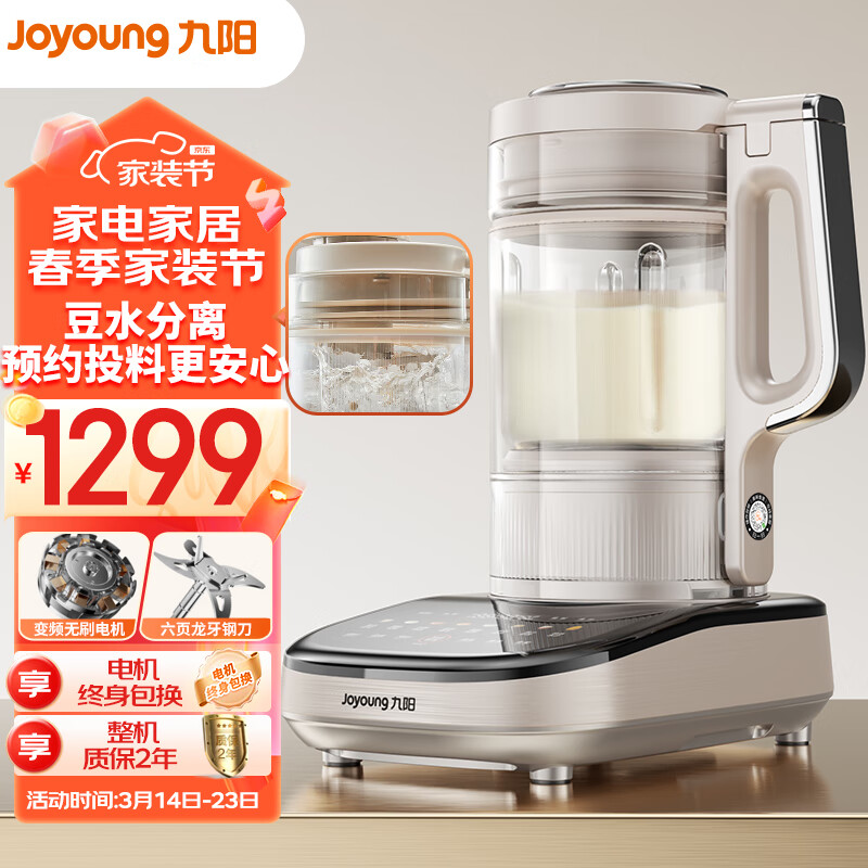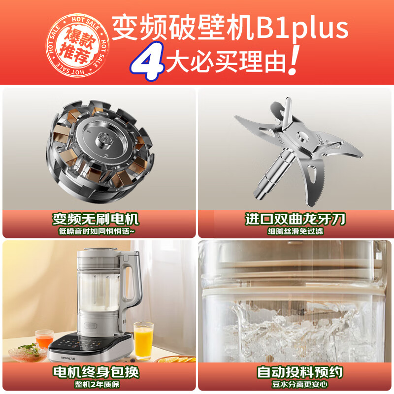 九阳轻音破壁机 家用榨汁机豆浆机料理机1.75L大容量 口感可调 多重降噪 变频轻音 触控彩屏 B1 plus价格:1299.00元!