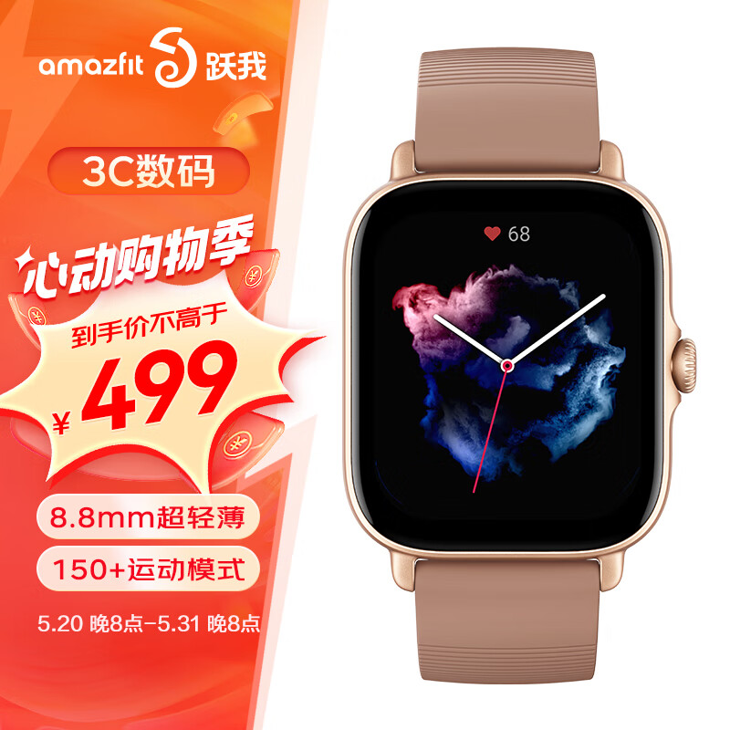 AMAZFIT520礼物 华米跃我 GTS 3 柔砂棕 智能手表 150种运动 50米防水 心率血氧 跑步游泳运动表男女士价格:399.00元!