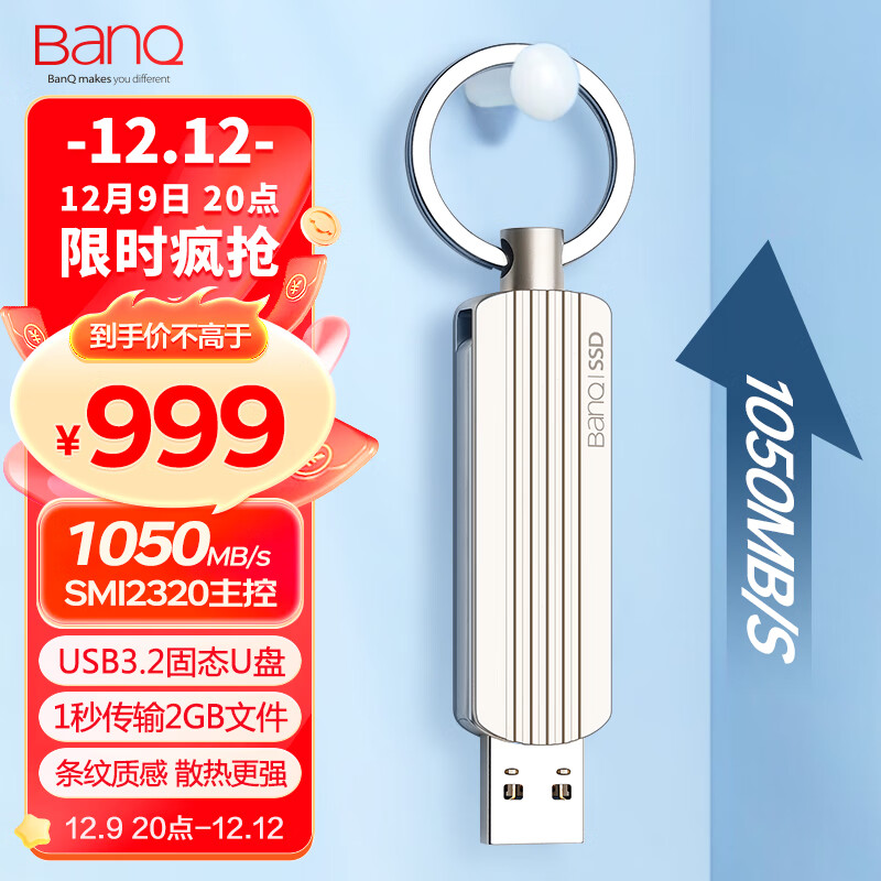 banq 2TB USB3.2 Gen2超极速固态U盘 A8全金属SSD移动固态闪存优盘 读1050MB/s 写950MB/s PCIe3.0高速协议价格:999.00元!