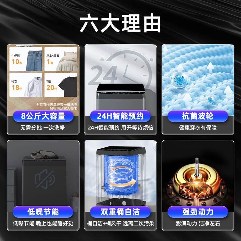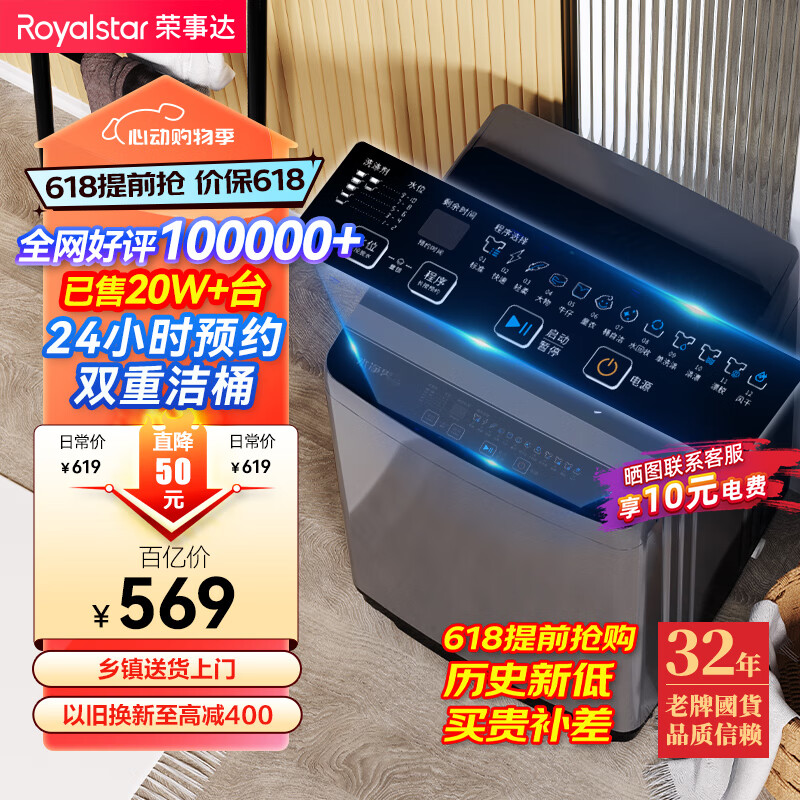 荣事达(Royalstar)洗衣机 8公斤全自动波轮家用脱水机甩干机宿舍租房洗衣机 以旧换新 透明灰 ERVP192016T价格:569.00元!