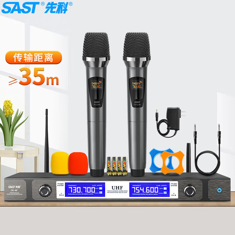 先科 SAST OK-60无线话筒 一拖二 U段 无线麦克风专业K歌麦克风家庭KTV演唱会议主持专业话筒价格:299.00元!