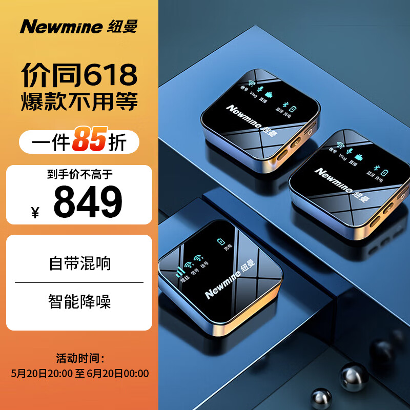 纽曼MC92无线领夹麦克风直播录音设备主播vlog拍视频采访唱歌收音麦单反相机手机蓝牙话筒一拖二价格:999.00元!