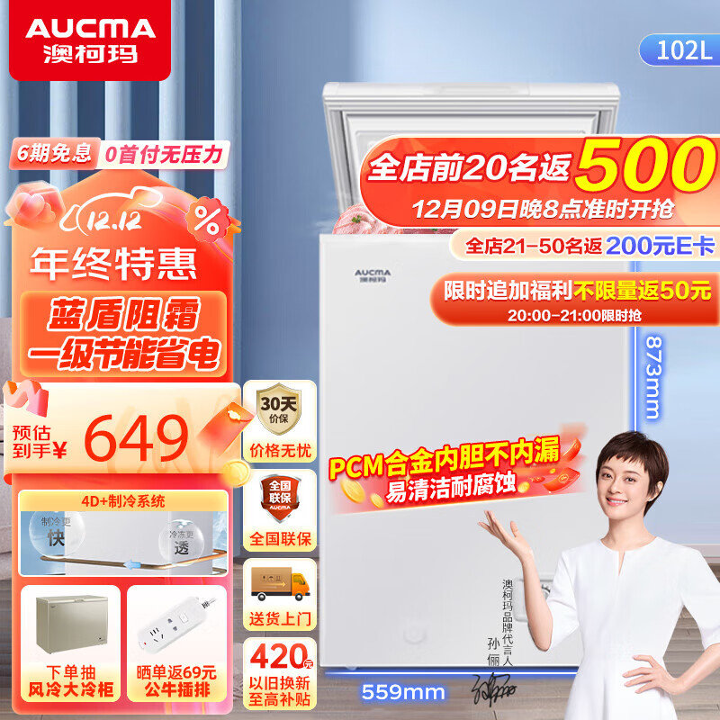 澳柯玛(AUCMA)102升低霜家用商用小冷柜 冷藏冷冻转换两用冰柜 一级能效母婴母乳小冰箱小型租房用小型冰柜 BC/BD-102NE价格:649.00元!