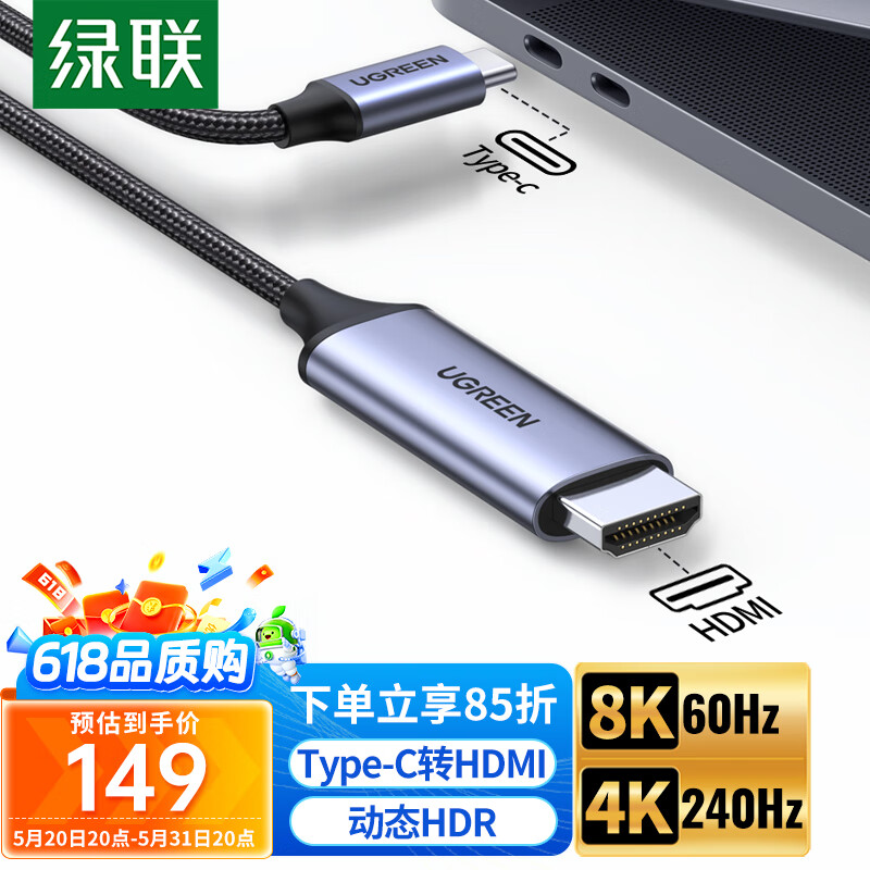 绿联Type-C转HDMI2.1线转接头转换切换器雷电3/4扩展高清8K60Hz/4K240Hz投屏适用苹果15笔记本电脑手机价格:175.29元!