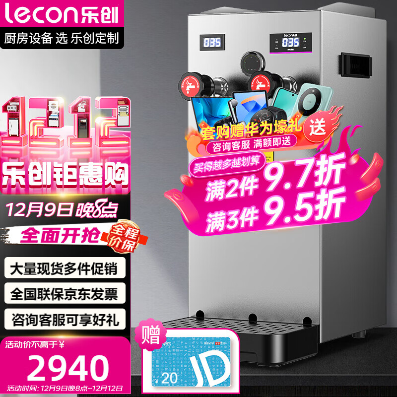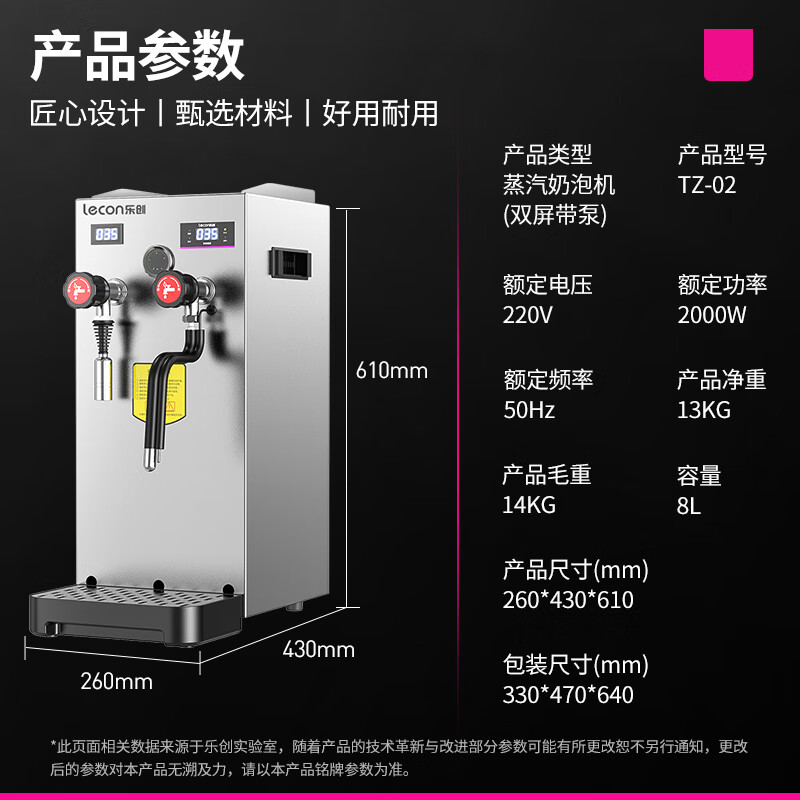 乐创(lecon)全自动蒸汽奶泡机咖啡打奶泡器萃茶机开水器商用奶茶店设备 银色款 TZ-02【一价无忧】价格:2940.00元!