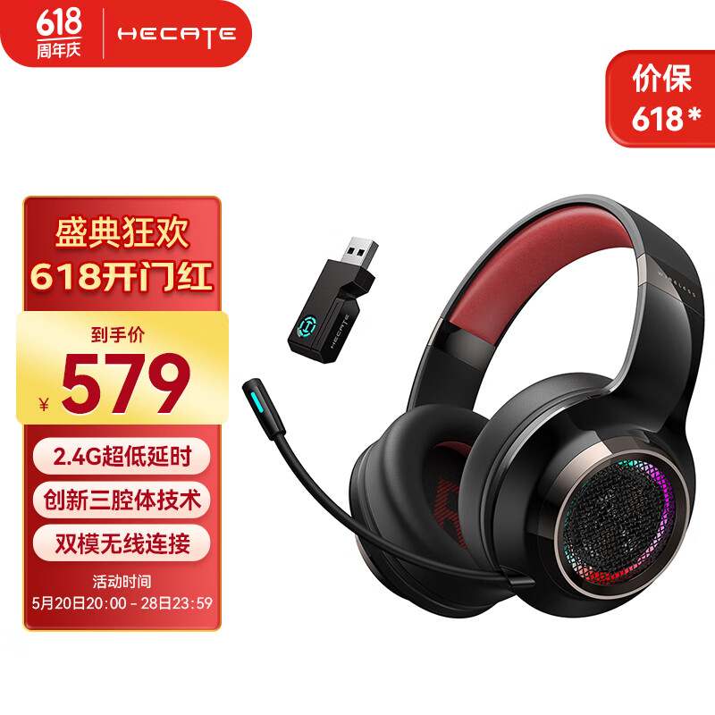 漫步者(EDIFIER)HECATE G6pro 2.4G蓝牙无线7.1游戏耳机头戴式 双模电脑电竞吃鸡耳机耳麦 礼盒包装送礼 赤刃红价格:699.00元!