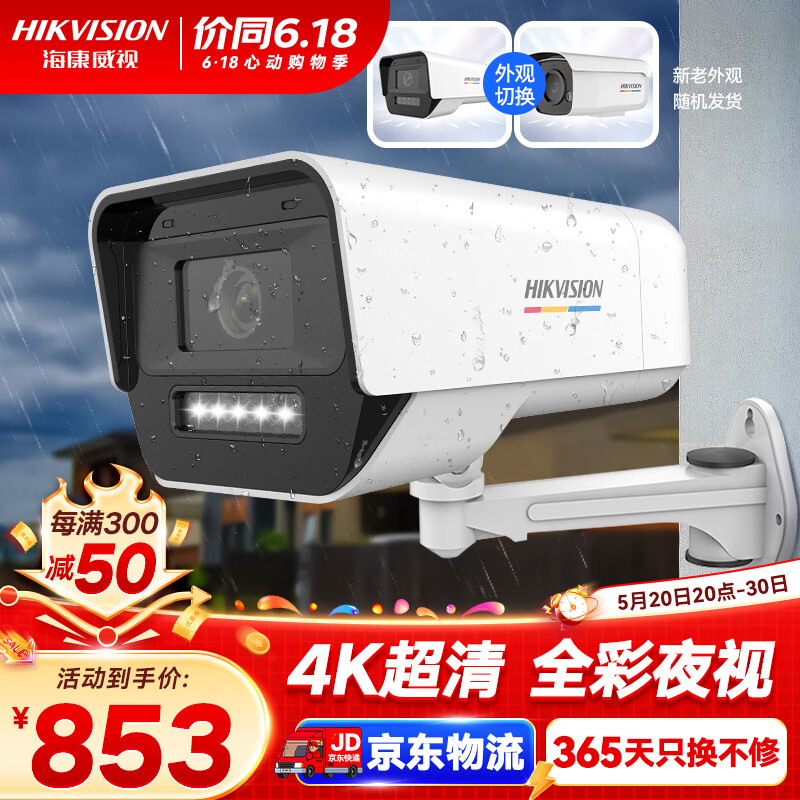 HIKVISION海康威视摄像头监控4K超清臻全彩网络摄像机800万录音POE供电室内室外防水防尘K18L-T 4mm价格:1033.00元!