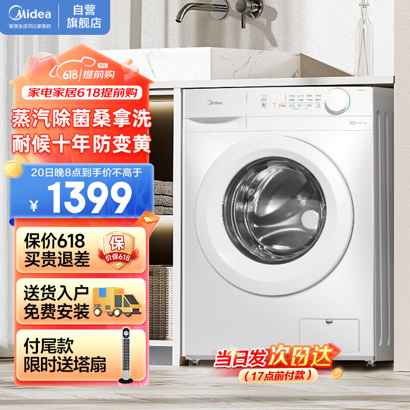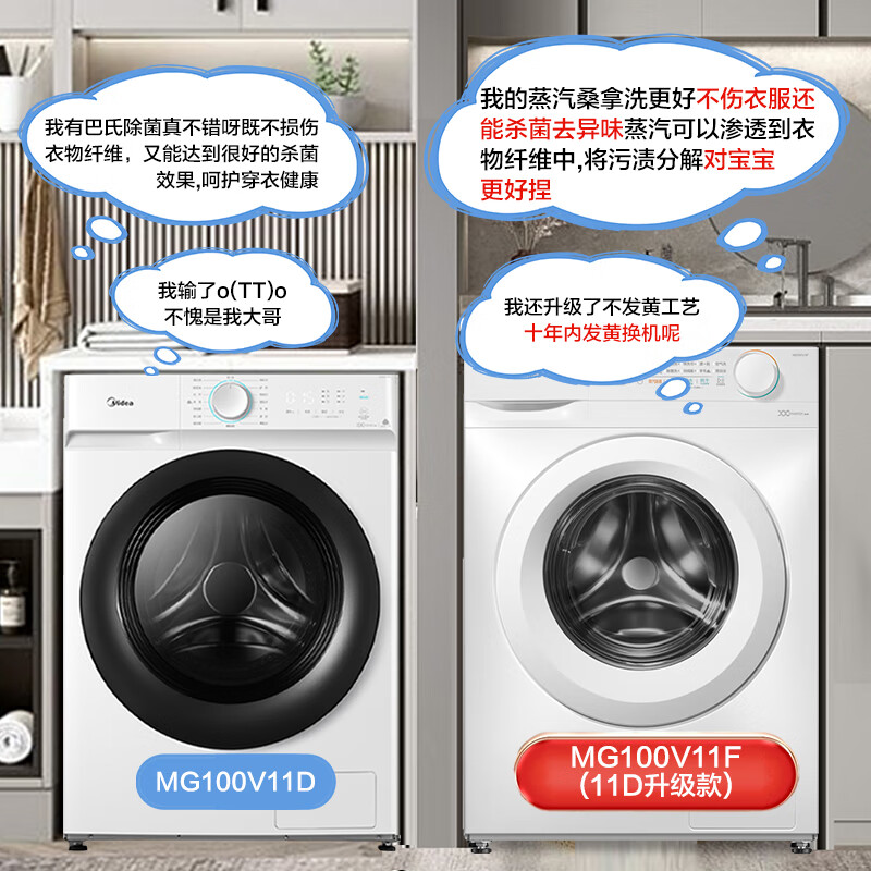 美的(Midea)滚筒洗衣机全自动变频节能 蒸汽除菌洗10公斤MG100V11F(V11D升级款)[官方直发]价格:1388.00元!