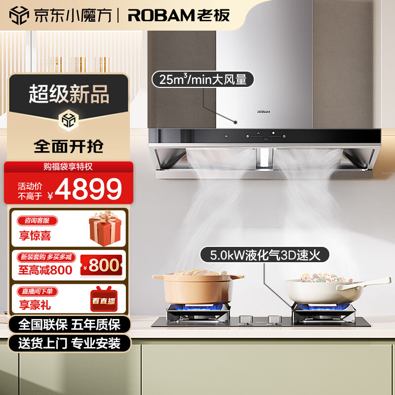 老板(Robam)抽油烟机欧式顶吸双腔变频烟灶套装25大吸力家用燃气灶吸油烟机灶具套装65D3S套装(液化气)价格:4898.00元!