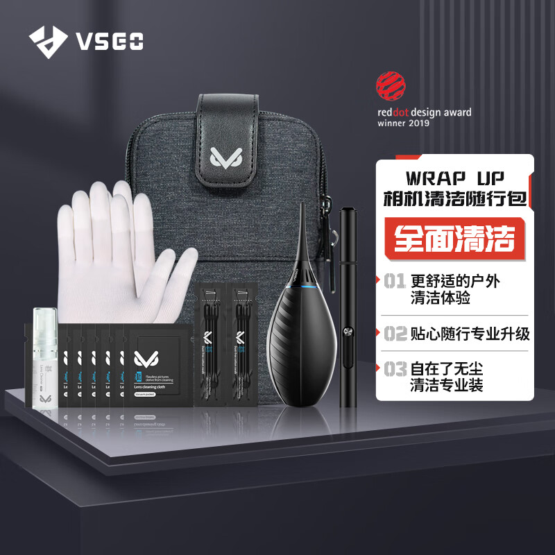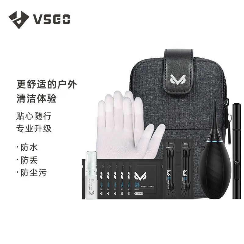 VSGO微高VS-A3 wrap up相机清洁随行套装相机防水包镜头清洁镜头纸布气吹皮毛虎镜头笔擦镜纸价格:249.00元!