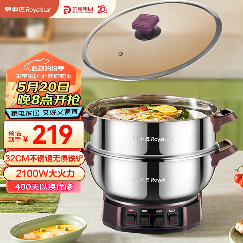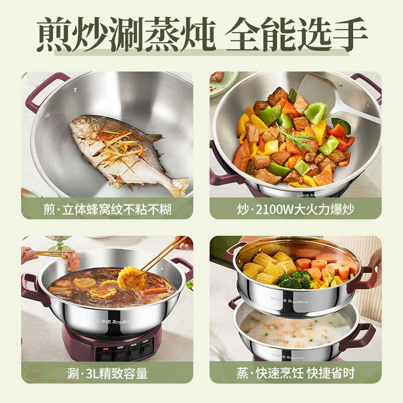 荣事达(Royalstar)电炒锅多功能家用铸铁锅山东锅电炒菜炒锅一体式不粘锅大功率蒸煮锅电热锅电火锅RDG-ZH32B单笼价格:215.00元!