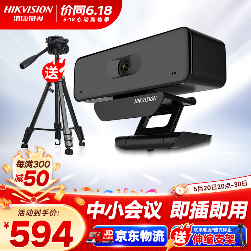 HIKVISION海康威视会议摄像头800万4K超高清视频会议USB免驱麦克风直播网课考研复试笔记本电脑台式机54U0B价格:694.00元!