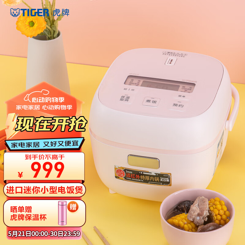 虎牌(TIGER)进口迷你小型电饭煲1-2人份 JBS-T55C 樱花粉 家用1.6L价格:999.00元!