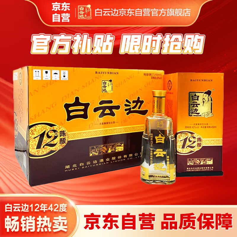 白云边 十二年陈酿 浓酱兼香型白酒42度 450ml*6瓶 整箱装(含礼品袋)价格:494.00元!