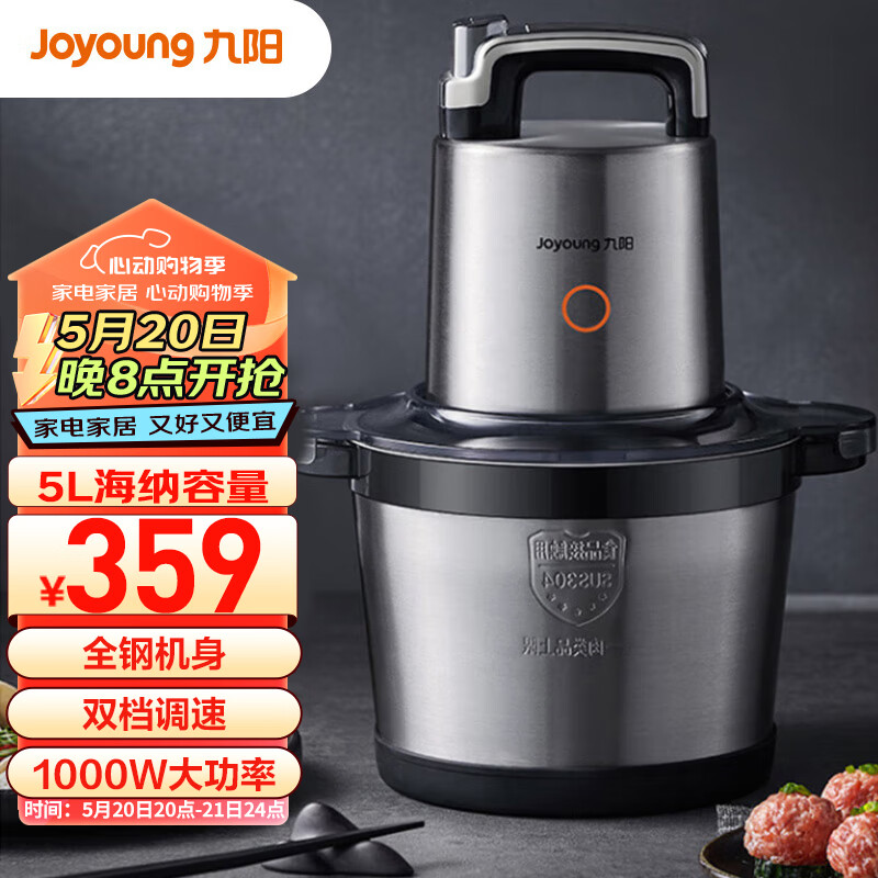 九阳(Joyoung)绞肉机家用电动多功能料理机搅拌切菜绞馅不锈钢碎肉S50-LA580价格:359.00元!