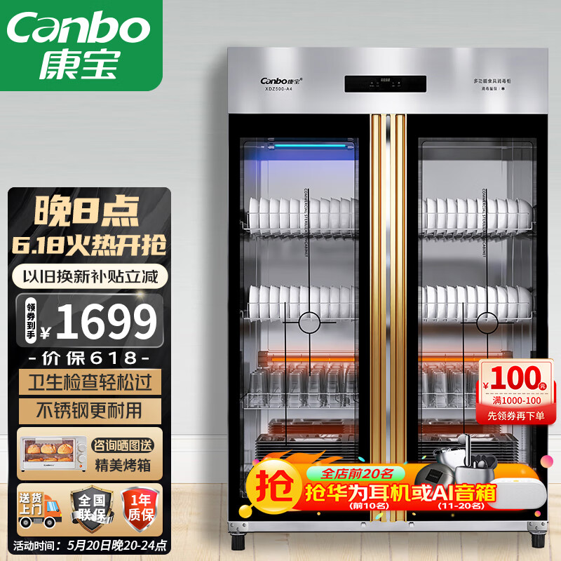 康宝(Canbo)消毒柜商用 臭氧紫外线消毒柜立式大容量双开门不锈钢食堂饭店酒店餐饮碗筷收纳柜消毒柜XDZ500-A4价格:1799.00元!