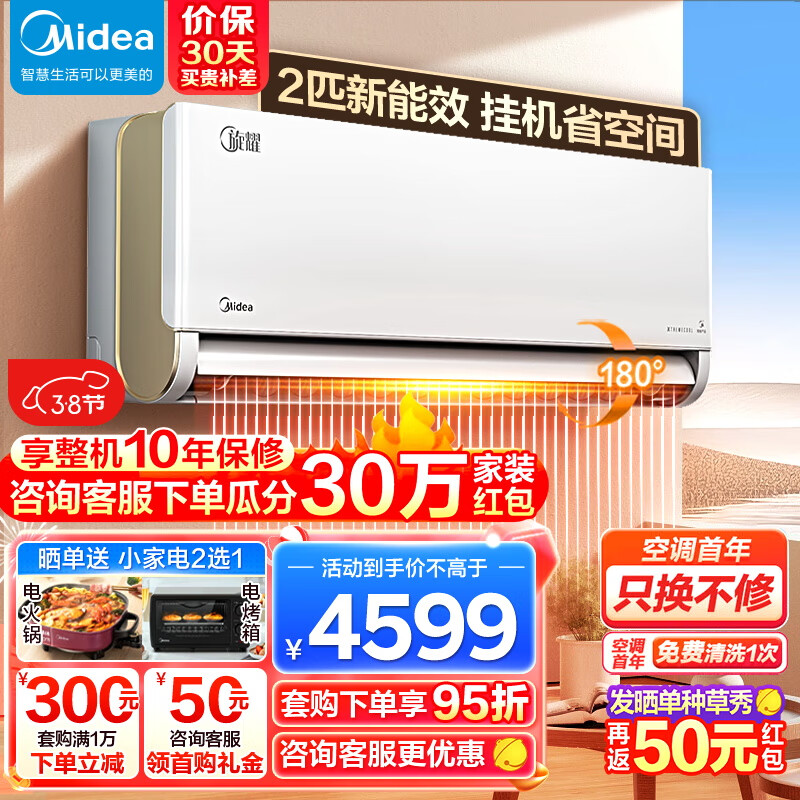 美的(Midea)空调 2匹旋耀 新能效变频冷暖 自清洁 智能家电 客厅商铺壁挂式空调挂机 KFR-50GW/N8MXA3价格:4599.00元!